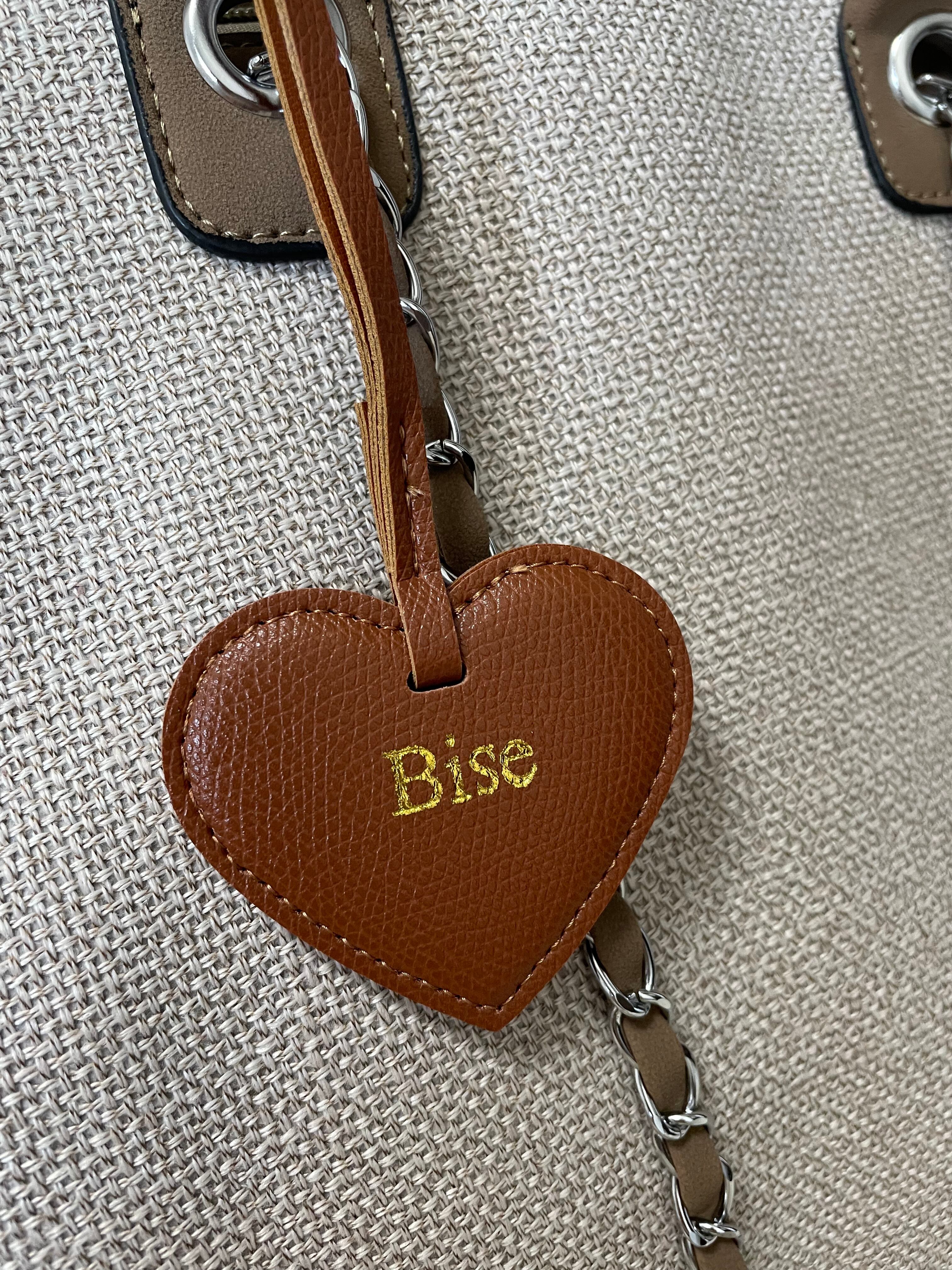 上質なキャンバス地にチェーンの輝きを添え、Biseらしいチャームでアクセントを効かせました。